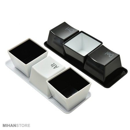 پیاله یا لیوان 3 تایی یک محصول جدید با طراحی ویژه و جالب می باشد که بصورت دکمه های کیبورد طراحی شده و کلمه های Ctrl - Alt - Delete بر روی انها نوشته شده که در صورت قرار دادن بر روی سینی مخصوص کاملا شبیه به صفحه کیبورد می باشد.