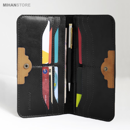 دارای جای موبایل، پول، خودکار و چندین کارت عابر بانک