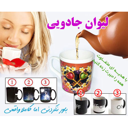 لیوان جادویی از سری تکنولوژی هایی می باشد توجه همه را به خود جلب می کند. شما تا بحال یک لیوان جادویی را مشاهده نکرده اید! این لیوان بسیار زیبا قادر است در چند لحظه شکل خود را به طور کامل تغییر دهد. لیوانی است که از جنس فوق حساس به حرارت ساخته شده است فقط کافی است در لیوان خود مقداری نوشیدنی داغ مانند آب، چای یا قهوه بریزید و آنگاه خواهید دید که این لیوان چگونه تصویر خود را تغییر می دهد. به محض خوردن نوشیدنی و سرد شدن آن ، لیوان به وضعیت قبل از خود بر می گردد و مشکی می شود. فروشگاه میهن استور این محصول زیبا و استثنایی را به شما معرفی می کند. با خرید این محصول دوستان و اطرافیان خود را متعجب کنید.