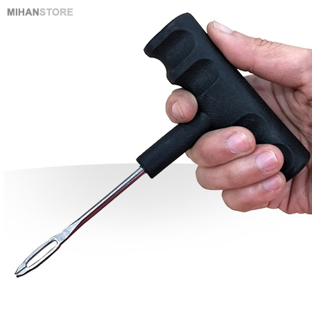 پنچری با استفاده از انبردست یا دم باریک از لاستیک خارج می شود و بلافاصله