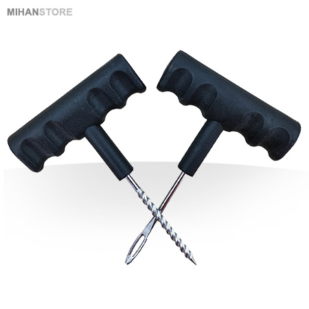 پنچری قرار داده می شود تا مسیر سوراخ لاستیک کاملا برای قرار دادن نخ