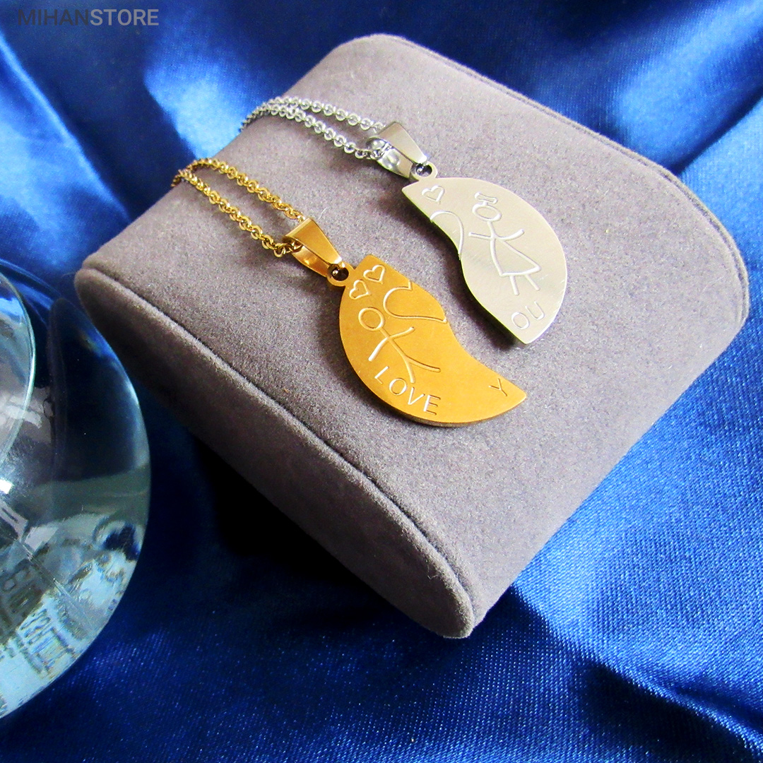 ست گردنبند عاشقانه Boy and Girl استیل رنگ ثابت و ضد حساسیت که از یک پلاک دختر نقره ای و یک پلاک پسر طلایی تشکیل شده است و می تواند هدیه ای زیبا برای روز تولد و روز ولینتاین و… باشد. این مجموعه گردنبند زنانه و مردانه از جنس استیل Stainless Steel بوده و کلمه ی LOVE YOU به معنای "دوستت دارم" با زیبایی و ظرافت بر روی آن ها حک شده است. این زیور به دلیل ابعاد ظریف و طراحی ساده و زیبایی که دارد براحتی مورد قبول سلیقه های خاص قرار میگیرد. هر گردنبند این مجموعه گرد کوچک دارای ابعاد 30 میلی متر است و طول زنجیر این آویز 44 سانتی متر می باشد. استفاده از مواد اولیه ی با کیفیت، ظرافت در طراحی و همچنین استفاده از واژه ی "دوستت دارم" این مجموعه را به انتخاب مناسبی برای عشاقی که می خواهند یادگاری ای برای عشق جاودانه ی خود داشته باشند، تبدیل کرده است. همچنین زیبایی و خاص بودن این محصول یک هدیه ی مناسب و جالب برای سالگرد ازدواج و یا هر مناسبت مشابه دیگر میباشد.