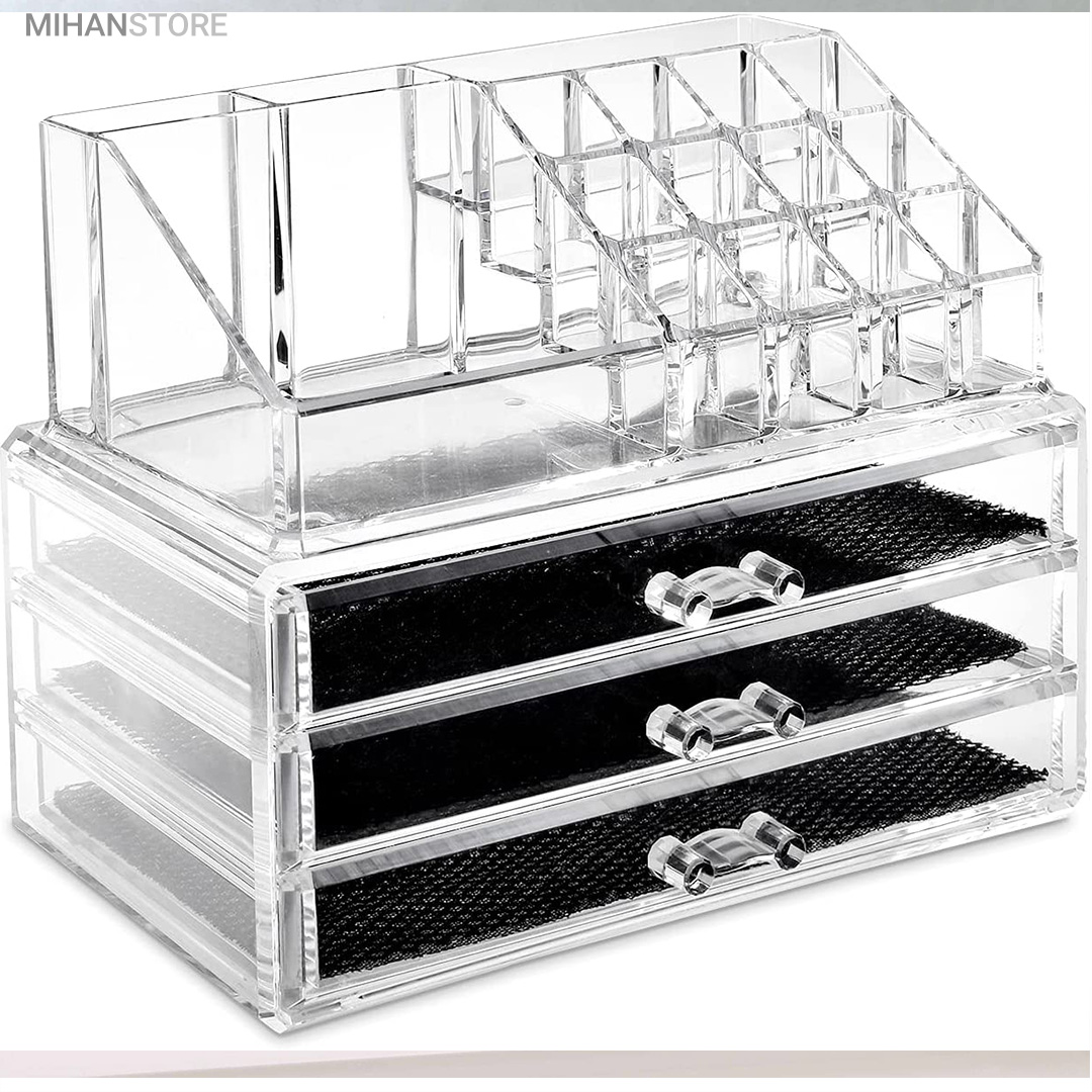 بهداشتی و آرایشی مناسب ، سهولت می بخشد. لوکس و زیبا دارای 16 محفظه شفاف جهت قرار گیری آیتم های مختلف در قسمت بالایی ، دارای سه کشو و دو محفظه جداگانه در قسمت بالا می باشد. ابعاد قسمت پایینی 13x13x23 سانتی متر وابعاد قسمت بالایی 21x12x8 سانتی متر میباشد. اگر بدنبال وسیله ایی برای مرتب کردن و جمع کردن وسایل آرایشی – بهداشتی خود هستید استند لوازم آرایشی را ما به شما پیشنهاد می کینم.