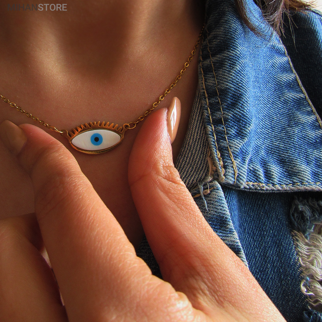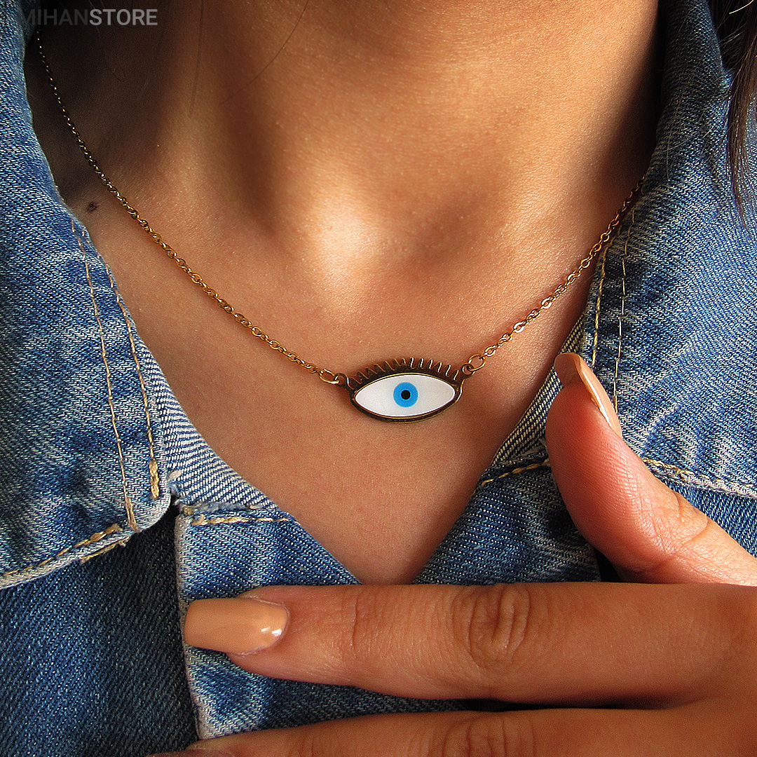 این گردنبند از استیل رنگ ثابت ساخته شده و دارای پلاک چشم نظر خاص و زیبا می