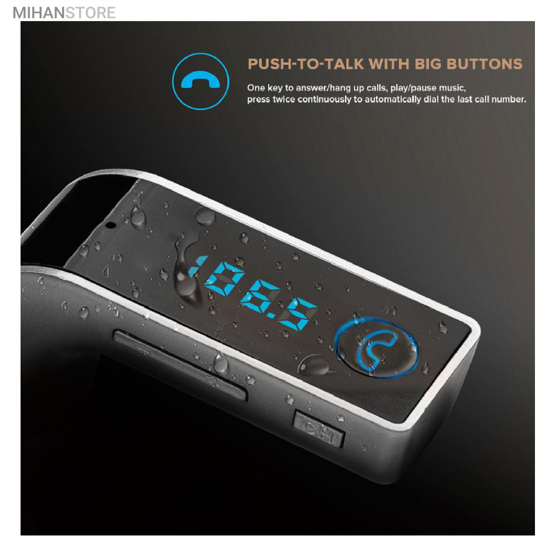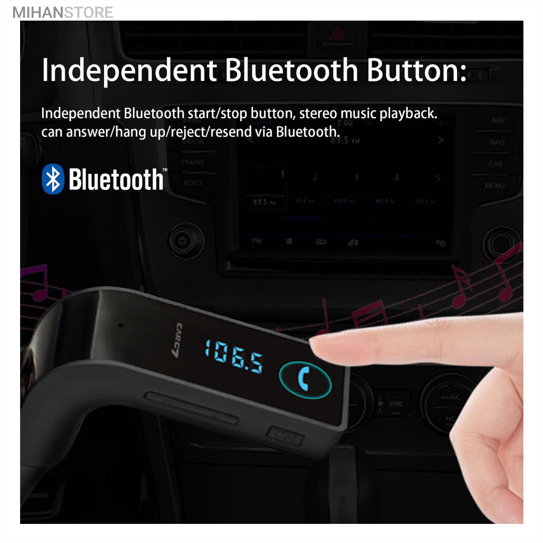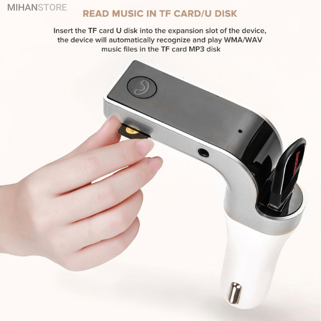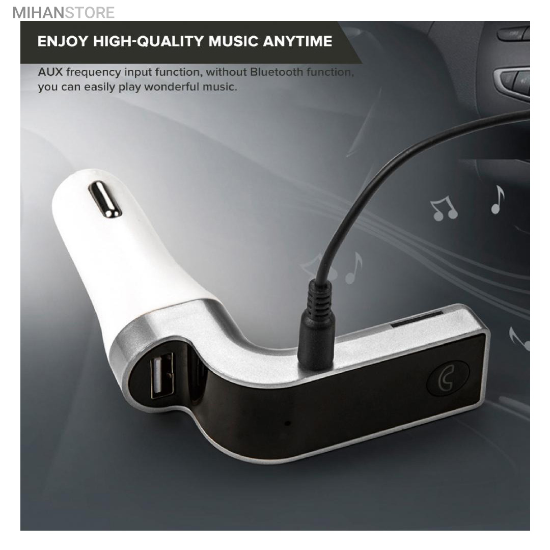 این محصول یک موزیک پلیر و شارژر فندکی است که علاوه بر شارژ تجهیزات گوناگون از طریق اتصال USB، امکان اتصال بیسیم به سیستم پخش خودرو و پخش موزیک های ذخیره شده در حافظۀ متصل شده به آن سیستم را داراست.این پلیر قابلیت پخش موزیک از روی فلش مموری های USB، کارت حافظه های MicroSD را نیز دارد. این موزیک پلیر همچنین قادر است از طریق بلوتوث به گوشی موبایل وصل شده و از طرف دیگر بوسیله بخش اف ام ترانسمیتر به سیستم پخش خودرو متصل شده و موزیک های موجود در حافظۀ گوشی موبایل را از رادیوی خودرو پخش کند. در صورت دریافت تماس ورودی در حین ارتباط بلوتوثی بین گوشی موبایل و سیستم پخش خودرو، موزیک به صورت خودکار قطع شده و تماس تلفنی در حالت اسپیکر برقرار خواهد شد؛ با پایان تماس تلفنی پخش موزیک به طور خودکار ادامه خواهد یافت.این موزیک پلیر از فرمت های صوتی MP3، WMA، MAV و FLV پشتیبانی کرده و دارای یک صفحۀ نمایش LED است. محصول فوق مجهز به فناوریCVC بوده و توانایی حذف اِکو و نیز کاهش نویز را دارد.Car G7 یک FM player با گیرنده بلوتوثی میباشد که قابلیت پخش موزیک از طریق بلوتوث و USB را داراست و همچنین از رادیو FM نیز پشتیبانی میکند.