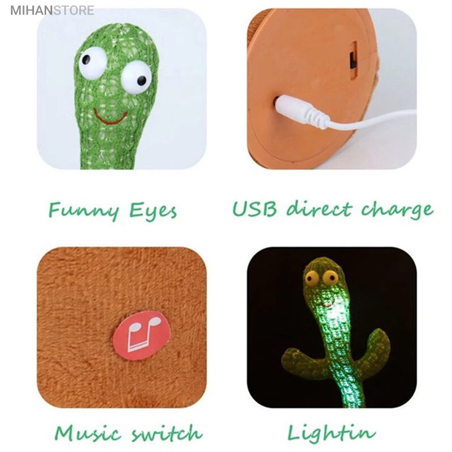 اسباب بازی مخمل زیبا و سرگرم کننده به شکل کاکتوس می تواند برقصد، آواز بخواند، حرکت موزون انجام دهد و صدای شما را تقلید کند. آن را شارژ کنید و و برای چند ساعت خود، اطرافیان و کودک خود را شاد کنید. کافی است که کابل شارژ USB که در داخل جعبه بسته بندی این محصول قرار دارد را از جعبه در آوردید و از یک طرف به USB و از طرف دیگر به قسمت مخصوص در زیر عروسک (گلدان) متصل کنید. با اتصال کابل شارژ به آداپتور، چراغ قرمز رنگ داخل گلدان روشن می شود و وقتی که عروسک فول شارژ شد، به رنگ سبز تبدیل می شود.