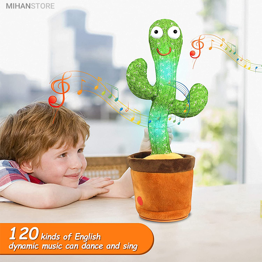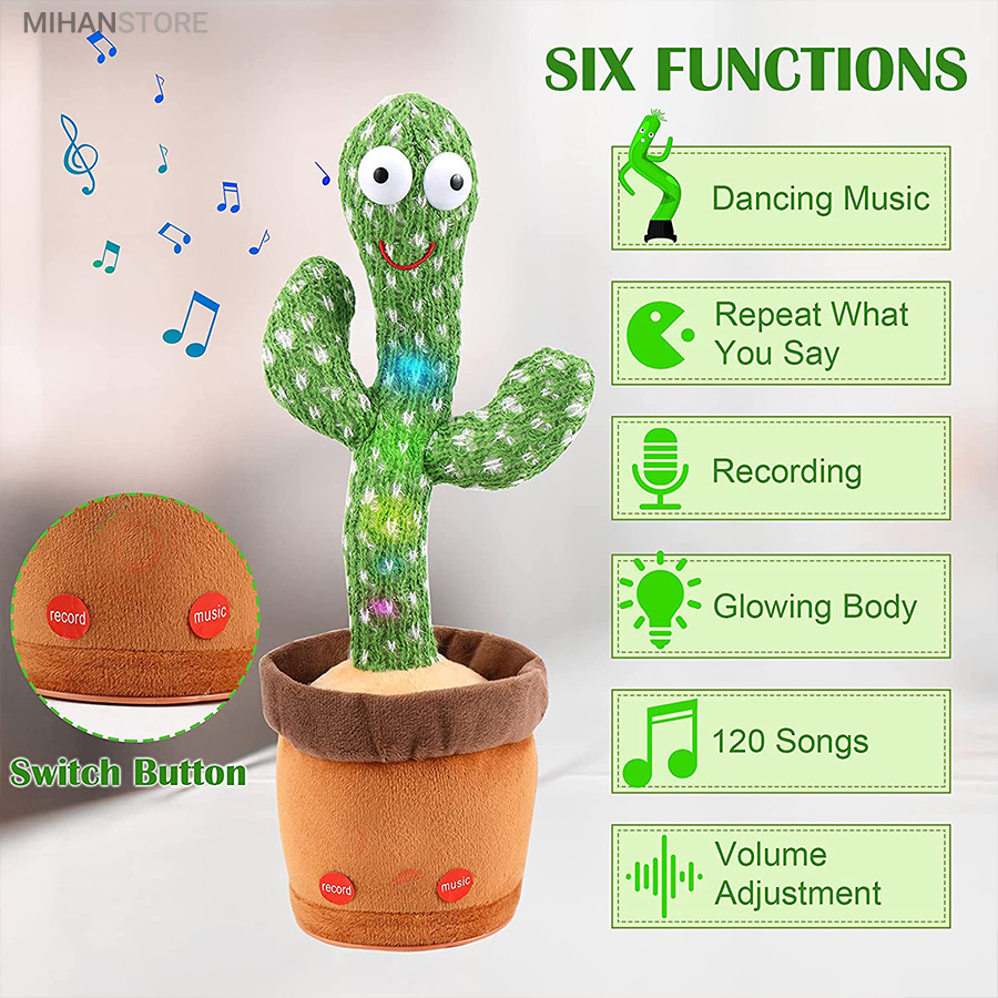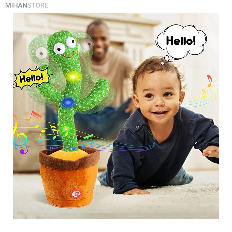 عروسک کاکتوس رقصنده سخنگو شارژی یک اسباب بازی جدید از جنس مخمل است. این عروسک که به شکل گلدان کاکتوس است. طول آن 32 سانتی متر و عرض پایه گلدان 12 سانتی متر است. روکش آن از مخمل و داخل آن با مواد نرم پنبه ای پر شده است. به این نوع اسباب بازی، plush toy گفته می شود. رنگ آن نیز سبز است. کاکتوس سخنگو زیباست و بچه ها آن را دوست دارند. چشمان درشت دارد، جنس آن با کیفیت، نرم و فاقد هر گونه حساسیت است. این عروسک از نوع شارژی که با استفاده از کابل شارژ USB شارژ می شود. بدیهی است که نوع شارژی آن مقرون به صرفه تر است، چرا که نیازی به خرید باتری نخواهید داشت. این عروسک قابلیت ضبط و پخش صدا و در واقع تقلید صدا به مدت 15 ثانیه را دارد. می توانید برای این عروسک لباس دلخواه خود را طراحی کنید و قیافه آن را مطابق با سلیقه خود درست کنید.