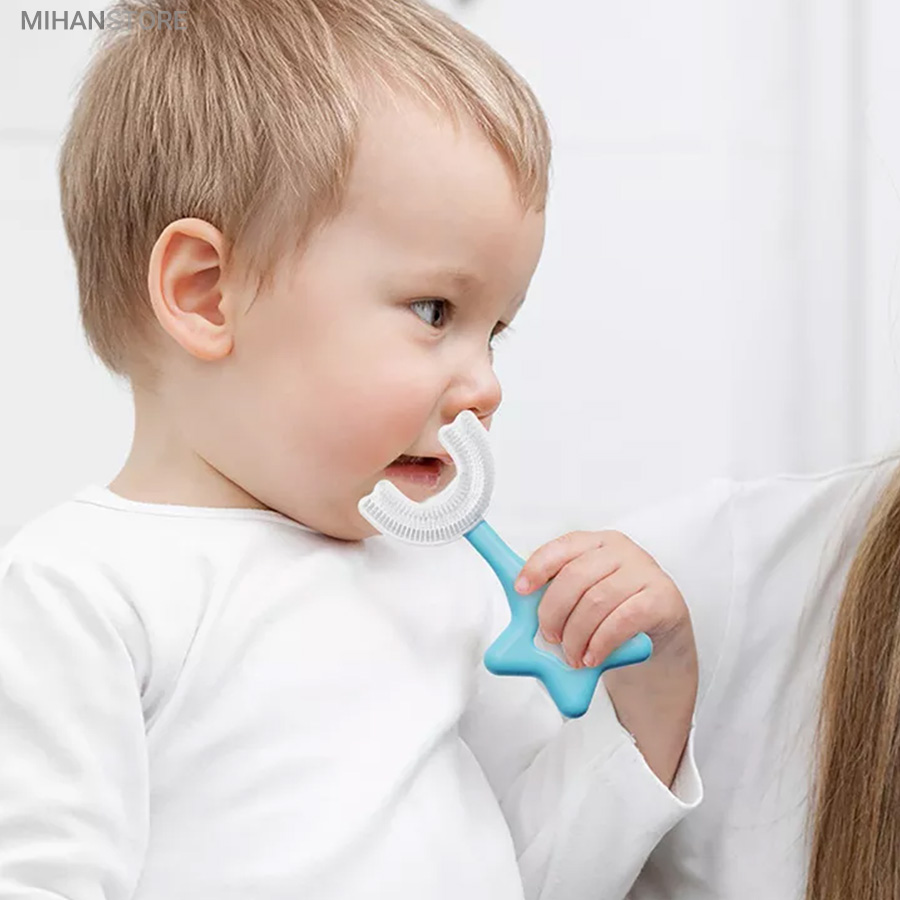 یکی از مهمترین مزیت های این مسواک این است که به طور همزمان هم دندان های قسمت بالا و هم دندان های قسمت پایین با هم شستشو داده می شوند در نتیجه وقت کمتری صرف شستشو دندانها می شود. به خاطر وجود مواد سیلیکونی یو شکل متناسب با دندان بچه ها تمامی قسمت های دندان ها و لثه ها به خوبی شستشو داده می شود حتی دندان های آسیاب . وجود چهار ردیف از فرچه های سیلیکونی در قسمت یو شکل این مسواک سبب می شود که حتی ریز ترین باقی مانده غذا ها از بین دندانها را خارج کند و تمیزی بیشتری به دندان ها ببخشد. از دسته مقاوم و مناسب تری نسبت سایر مسواک های معمولی برخوردار است . فرچه های این مسواک چون از جنس سیلیکون هستنند هیچ گونه آسیبی به دندان ها و لثه ها نمی زنند و موجب زخم های وآسیب احتمالی نمی شود و در شکل وساختار دندان ها کوچکترین تغییری را ایجاد نمی کنند. وهمین امر باعث محبوبیت دو چندان این مسواک در بین خانواده ها و بچه ها شده است . برتری مسواک جدید سیلیکونی نسبت به سایر مسواک های معمولی این است که فقط با یک حرکت 90 درجه به صورت کامل دندان هارا می توانند تمیز کنند و نیازی به تغییر حالت مسواک ویا فرچه آن ندارد. وجود فرچه های سیلیکونی برای دندان ها حالت تمیزی را به ارمغان می آورد و برای لثه ها کار ماساژور انجام می دهد و سبب گردش خون بیشتر در قسمت لثه ها می شود. در مجموع می توان گفت که این محصول به خاطر شکل و ظاهر متفاوتش انقلابی جدید در صنعت مسواک سازی بچه ها بوده است.