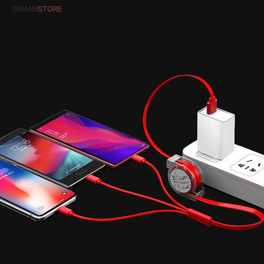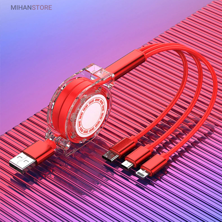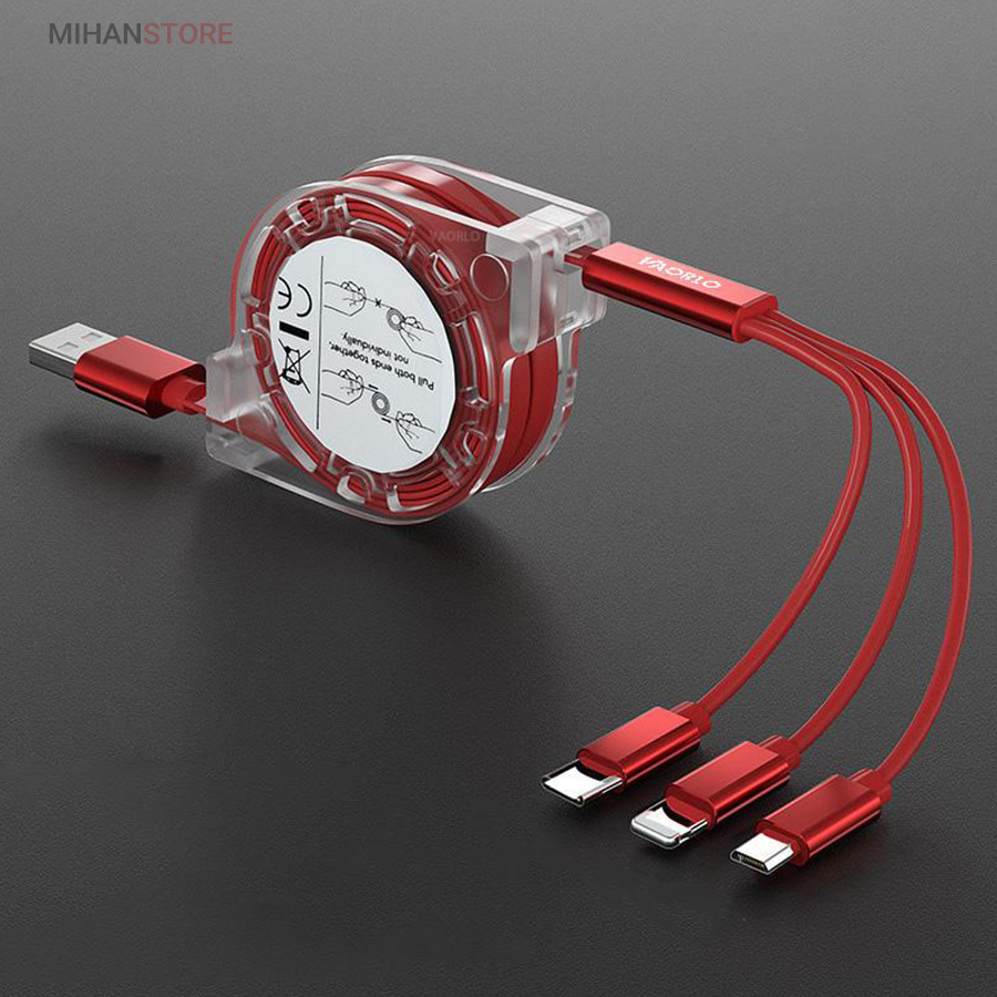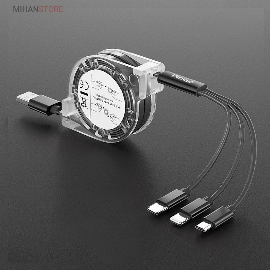 کابل فست شارژ USB جمع شو 3in1 توان 3.0 آمپر با طول 1 متر دارای هر سه پورت