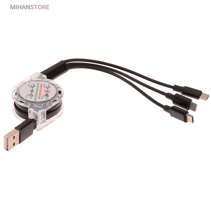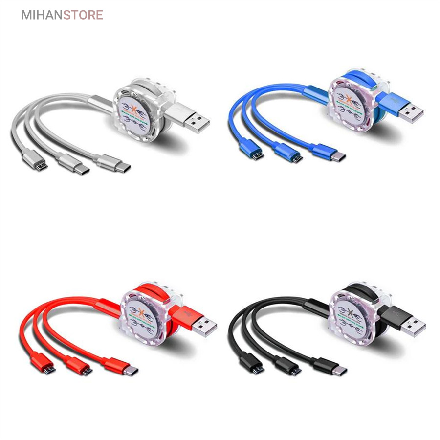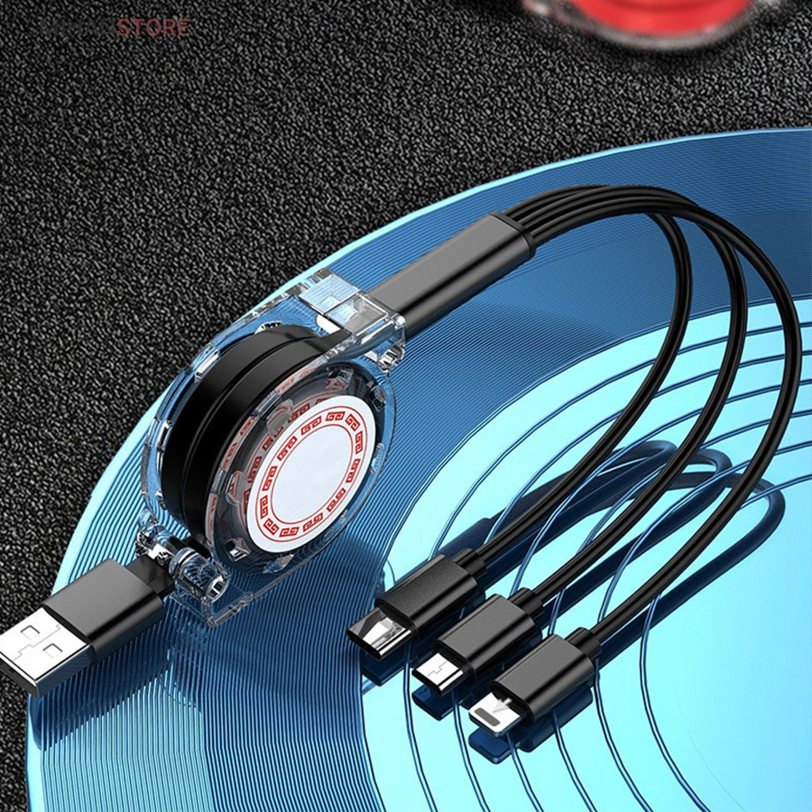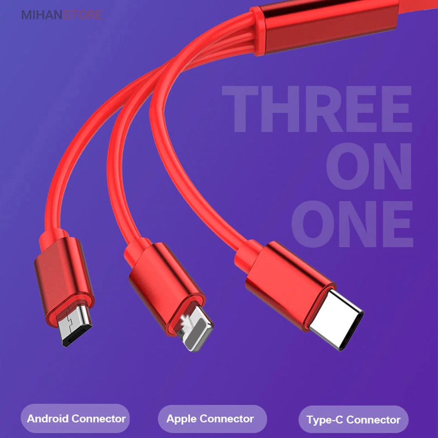 کابل فست شارژ USB جمع شو 3in1 توان 3.0 آمپر با طول 1 متر دارای هر سه پورت