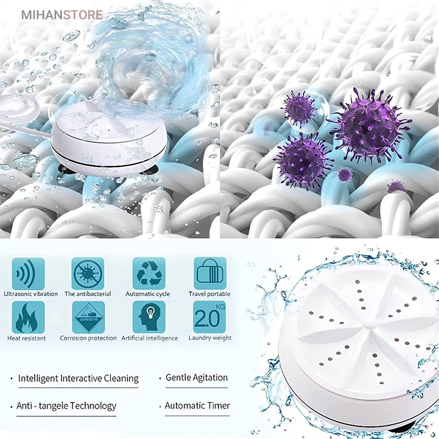 همه ما در روز لباس های کوچک (مانند لباس زیر، دستمال، روسری، کراوات و ...) رو کثیف میکنیم که نیاز به شستشو مجدد دارن خصوصا لباس های بچه ها که حجم و ابعاد کمی دارن اما خیلی سریع کثیف میشن و خیلی سریع هم نیاز به شستن مجدد دارن، اما حجم کم اونها باعث میشه تا نتونین ماشین لباسشویی بزرگ و اتومات رو روشن کنین. طراحی این دستگاه ها بگونه ای هست که بتونین به راحتی و در کمترین زمان لباس های تمیزی داشته باشین. مینی واش ULTRA SONIC یک محصول کاربردی و کم حجم میباشد و قابل استفاده در منزل و بیرون منزل حتی در مسافرت میتوان از آن استفاده کرد. مینی واش ها ابعاد کوچک و وزن پایینی دارن و ابعاد کوچک این دستگاه ها به شما کمک خواهد کرد که به راحتی آن را در تمام طول سفر به همراه داشته باشید. همچنین کار کردن با آن ها بسیار راحته و تنها کافیه تا مقداری آب و شوینده در یک سطل یا سینک ظرفشویی بریزید و دستگاه را در آنجا قرار دهید دستگاه را روشن کنید تا لباس هایی تمیز و پاک تحویل بگیرید. منبع تغذیه این محصول USB میباشد و با تمام شارژرها گوشی موبایل و پاور بانک قابل استفاده میباشد قابل استفاده با برق شهری (داخل محصول کابل USB قرار دارد اما می توان با تبدیل های موجود با برق شهری استفاده کرد - تبدیل داخل بسته قرار ندارد) و البته با تبدیل های موجود در منزل یا بازار قابل استفاده با برق شهری نیز می باشد. برای تسهیل در شستشو و ثابت ماندن مینی واش می توانید از پلاستیک های مکنده چسبان داخل جعبه استفاده نمایید.