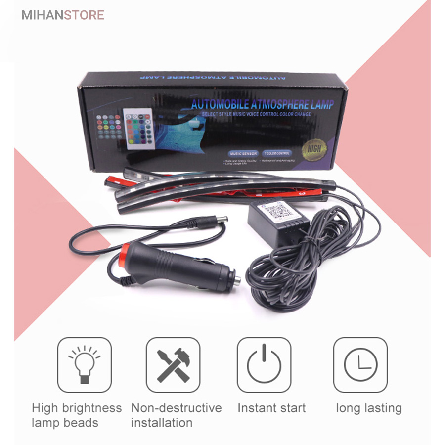 کیت نورپردازی داخل خودرو Atmosphere ریموت دار محصولی فوقالعاده باقابلیتهای شگفتانگیز جهت نورپردازی داخل خودرو شامل چهار شاخه LED SMD هشت رنگ با قابلیت رقص نور با ترکیب رنگها و از همه مهمتر حالت اکولایزر برای هماهنگی با نوت های موسیقی انجام رقص نور موزیکال است که همراه با ریموت کنترل جهت تنظیم راحت میزان نوردهی، نوع رقص نور و... عرضه میگردد. کیت نورپردازی داخل خودرو Atmosphere چهار عدد نوار LED دارد که در هشت رنگ مختلف به نمایش در میآید. به کمک ریموت کنترلی که داخل بسته این محصول قرار گرفته است میتوان این LEDها را مدیریت کرد.