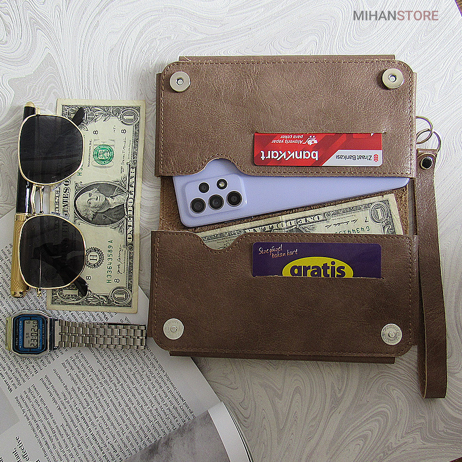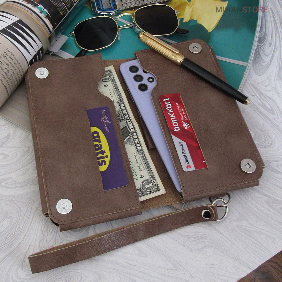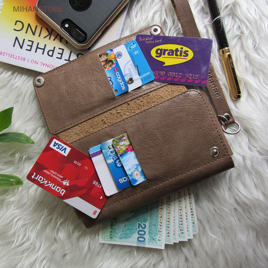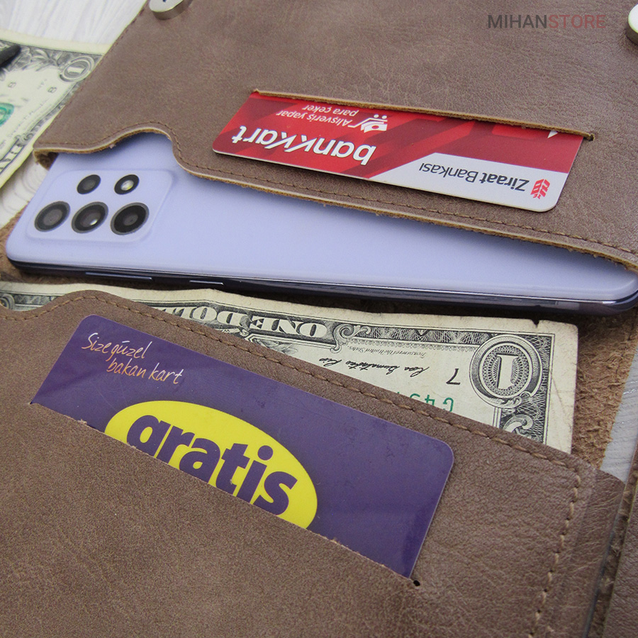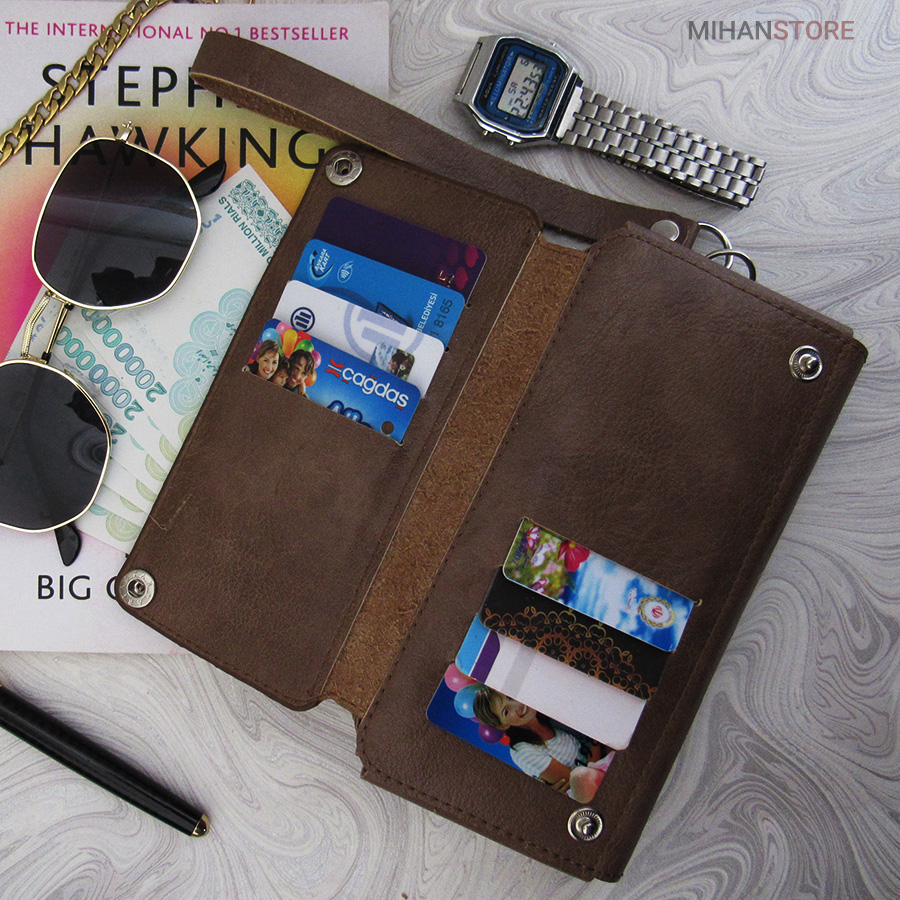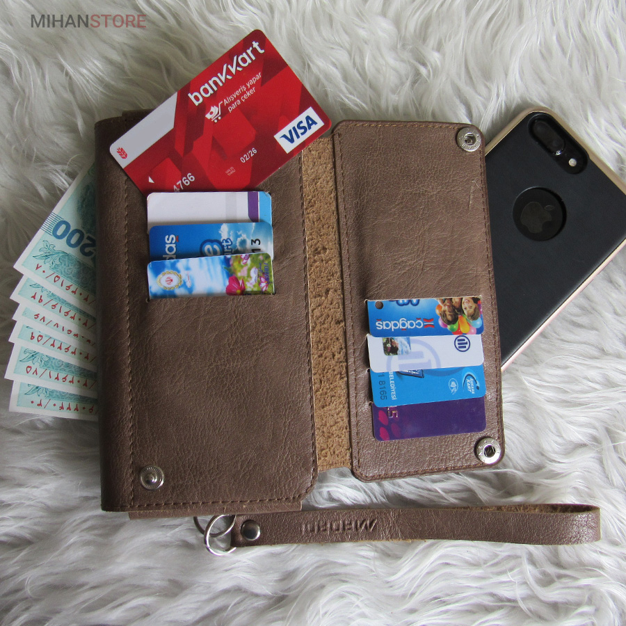 جای موبایل، جای چندین کارت عابر بانک و جای پول با طراحی زیباعرضه شده. این