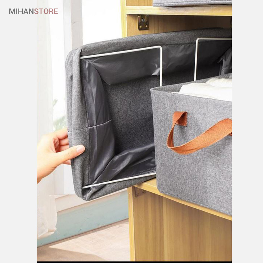 باکس لباس و شلوار داخل کمد یک جعبه پارچه ای بسیار مقاوم اما سبک و کم حجم به شکل مستطیل با ابعاد طول 40، عرض 25 و ارتفاع 24 سانتی‌متر می‌باشد که دارای اسکلت داخلی جمع شونده است که علاوه بر حفظ شکل ظاهری باکس، استحکام بیشتری نیز ایجاد می‌نماید.  باکس لباس و شلوار داخل کمد با ارتفاع مناسبی که حین باز کردن آن وجود دارد می‌توان حجم قابل توجهی از لباس و پیراهن و شلوار را در داخل خود جای دهد.  در صورت عدم استفاده از این باکس لباس اسکلت دار هیچ محدودیتی بابت جمع کردن و قرار دادن آن در جای مناسب نخواهید داشت و به گونه ای است که به راحتی تا می‌شود و می‌توانید آن را در کشو و قفسه بگذارید.  همچنین جنس پارچه ای ضخیم با قابل شستشو، مقاومت در برابر چروک، ساییدگی، پوسیدگی و تغییر رنگ از دیگر محسنات این باکس است. جنس این کالا پارچه برزنتی درجه یک ضخیم می باشد.