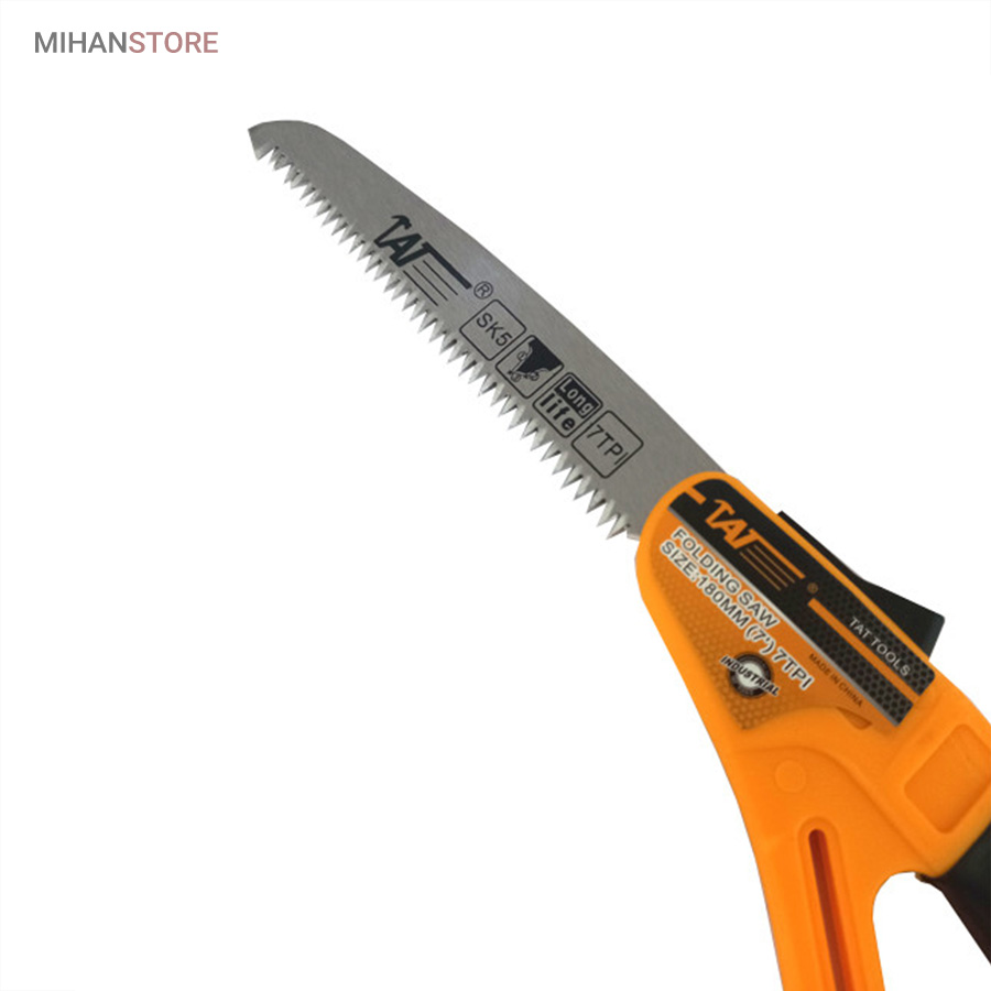 اره یکی از ابزارها مهم در باغ و منزل است که به کمک آن شاخههای خشکیده و شاخههایی که بیش از حد بالا رفتهاند یا پایین درختان زده شده را هرس میکنید تا درخت شاخه جدید بزند و رشد آن سریع تر شود. علاوه بر این اره تاشو تات در کمپینگ و مسافرتها نیز به کار میآید و با توجه به اینکه اندازه مناسبی دارد و فضای بسیار کمی میگیرد میتوانید در کیف کمپ خود قرار دهید و به کمک آن هیزمها و چوبها را برای روشن کردن آتش خرد و تکه تکه کنید.اره تاشو TAT ساخت چین و طول کلی آن ۴۰ سانتیمتر که تیغه آن ۱۸ سانتیمتر و دسته اره تاشو ۲۲ سانتیمتر است. دسته این اره از جنس پلاستیک است و با روکشی که دارد از تعریق دست تا حدودی جلوگیری میکند.مزیت این اره تاشو باغبانی نسبت به بقیه مدلها در این است که به سهولت جمع میشود و فضای بسیار کمی را اشغال میکند. هنگامی که اره تاشو را باز میکنید و میخواهید از آن استفاده کنید، یک قفل روی اره قرار دارد که باید بهوسیله آن تیغه اره تاشو را قفل کنید تا به یک اره معمولی در زمان کار تبدیل شود. وجود این قفل روی اره تاشو تات بسیار مهم و ضروری است و باعث میشود که در حین کار اره تا نشود و به راحتی و با اطمینان بالا بتوانید از آن استفاده کنید.
