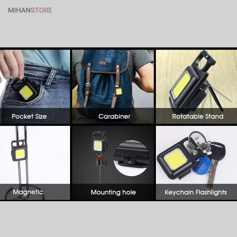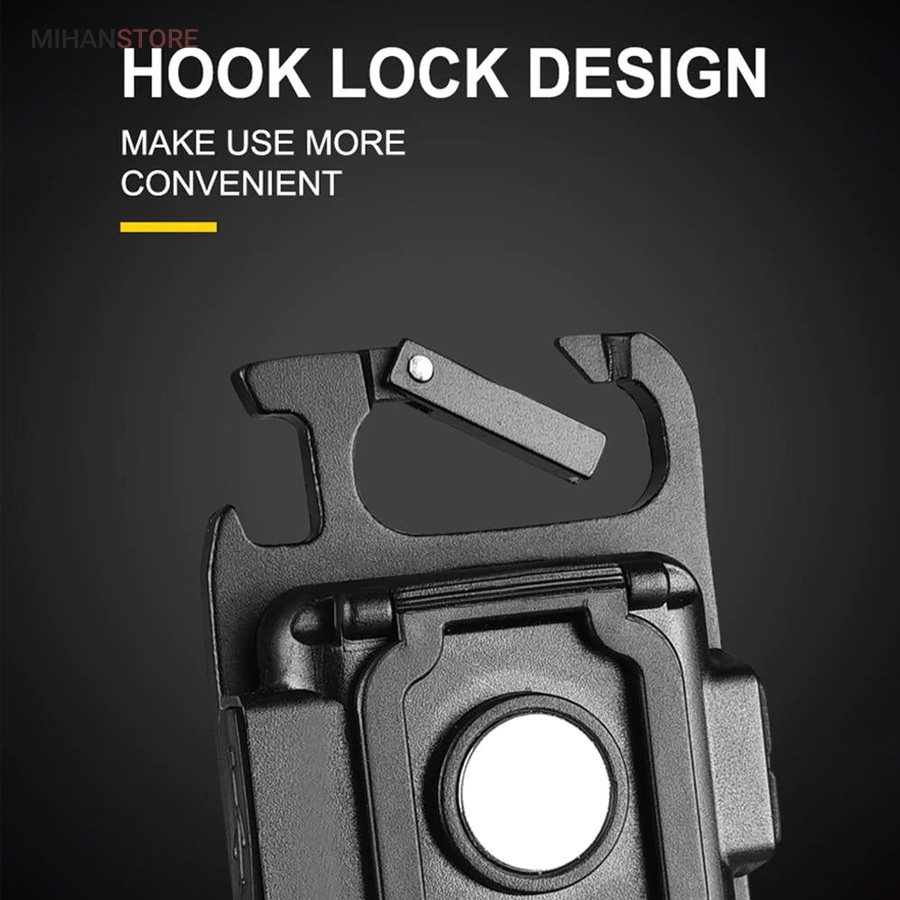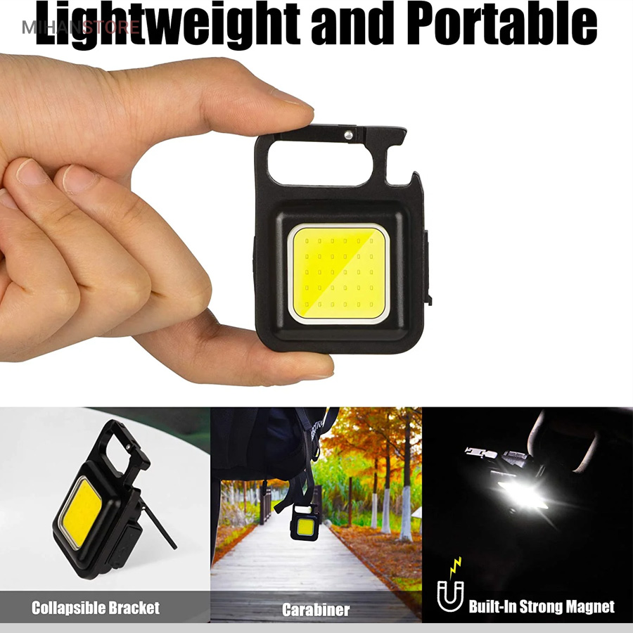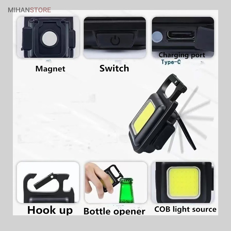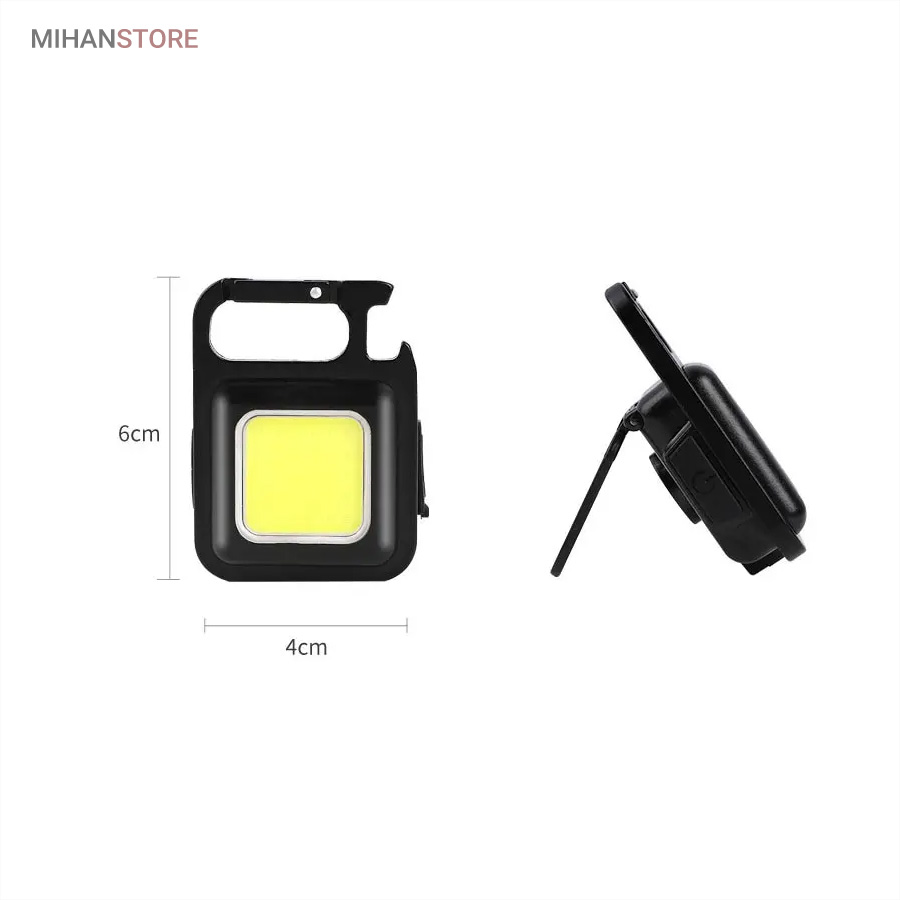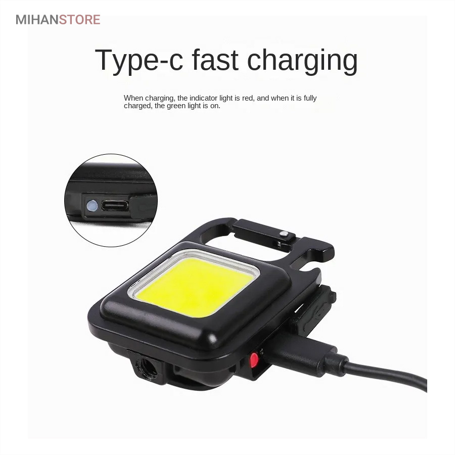 وقتی زمان شارژ مجدد فرا می رسد، کافی است آن را به هر منبع تغذیه USB وصل کنید. این چراغ قوه شارژی USB توسط یک باتری داخلی قابل شارژ با ظرفیت 500 میلی آمپر ساعت، کابل شارژ تایپ C به USB تغذیه می شود. معمولاً حدود 2 ساعت طول می کشد تا کاملاً شارژ شود. پایه آهنربایی قوی و دسته قابل چرخش به شما امکان می دهد در حین کار دستان خود را رها کنید. طراحی آهنربا به لامپ اجازه می دهد تا به هر فلزی متصل شود و دسته قابل تاشو 180 درجه اجازه می دهد تا لامپ در زوایای مختلف قرار گیرد یا در مکان های خاصی آویزان شود.این چراغ قوه جاکلیدی می تواند نورهایی با حداکثر 800 لومن ساطع کند. این یک نور روشن با زاویه گسترده ارائه می دهد. LED فنی بزرگ COB اجازه می دهد تا از این چراغ به عنوان چراغ کار کوچک و چراغ اضطراری استفاده شود. چراغ قوه قابل حمل دارای کارابینی است که به راحتی به حلقه کلید یا کیف وصل می شود و در برابر آب و ضربه مقاوم است. از طرف دیگر، بطری بازکن خوبی است. شما می توانید از آن در سناریوهای مختلفی مانند کمپینگ، پیاده روی سگ، جستجوی چیزها، تعمیر استفاده کنید.