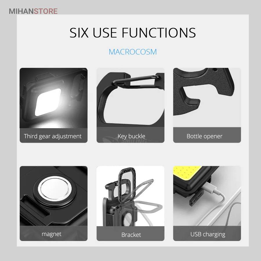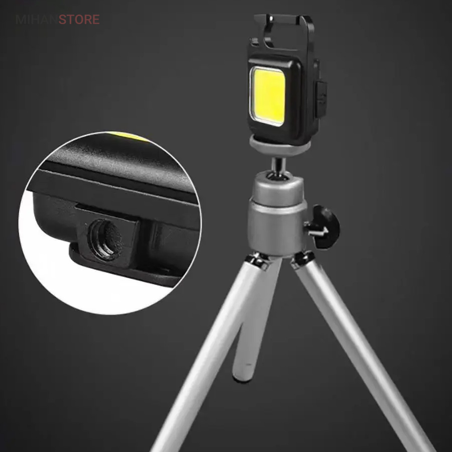 مینی چراغ پر قدرت چندکاره COB محصول کاربردی برای استفاده در کمپینگ و مسافرت های بیرون شهری حتی داخل منزل است. این مدل پروژکتور با طراحی و کیفیت عالی خود در مسافرت ها و گردشگری و همچنین درموارد اضطراری همچون نبودن برق, به سهولت مورد استفاده قرار میگرد. این پروژکتور COB با سه حالت نوردهی بصورت ثابت (پر نور , کم نور) و چشمک زن (SOS) محیط اطراف خود را به طور کامل روشن می کند. در پشت این محصول یک آهنربا پر قدرت و یک دسته تعبیه شده است که طراحی آهنربا به این محصول اجازه می دهد تا به هر فلزی متصل شود شما میتوانید به سرعت آن را به یک سطح فلزی، حتی وارونه (مثلاً به سقف یا کاپوت ماشین) متصل کنید و دسته قابل تاشو 180 درجه اجازه می دهد تا لامپ در زوایای مختلف قرار گیرد یا در مکان های خاصی آویزان شود ومحیط را کاملا روشن کند.