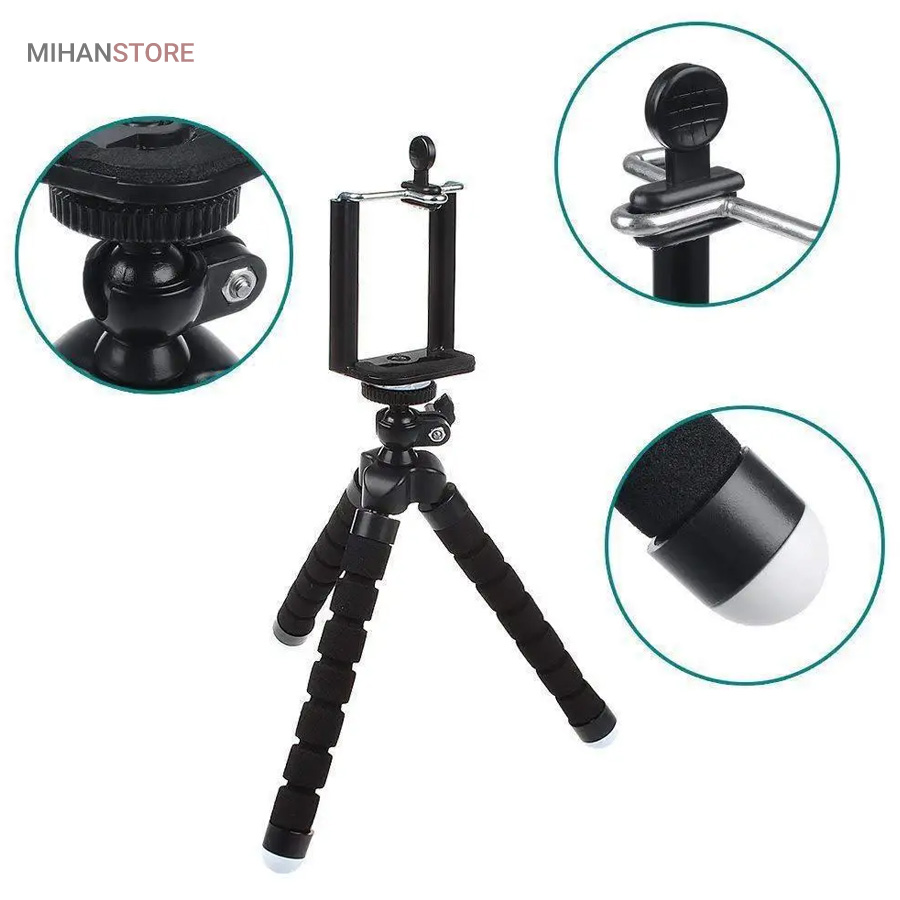 اگر دنبال یک سه پایه گوشی برای فیلمبرداری و عکس برداری هستید که در محیطهای متفاوت بتوانید از آن استفاده کنید و ارزان قیمت هم باشد سه پایه عنکبوتی یا همان spider یک گزینه اقتصادی و عالی است. این سه پایه دارای پایه های منعطف بوده که قابلیت تغییر جهت را دارد و می توان آن را به سطوح مختلف نصب کنید. از این سه پایه می توان برای نمایش فیلم نیز استفاده کرد.جنس سه پایه مدل Spider از پلاستیک فشرده ومقاوم است که جنسی مقاوم و سبک