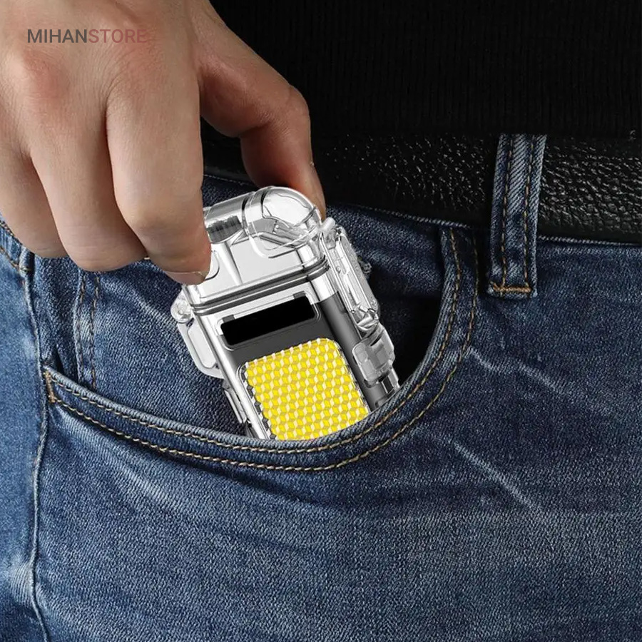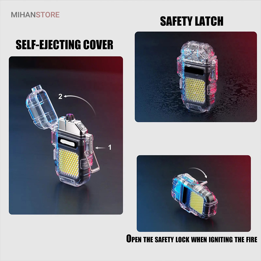 این مدل فندک بدون شعله است و نیازی به سوخت (گاز) ندارد. به همین خاطر استفاده از آن بسیار راحت است و کاربرد بیشتری نسبت به فندک معمولی دارد. در واقع منشا تولید حرارت در فندک پلاسما شبیه به قوس الکترونیک است؛ با حرارت پایین تر، که توانایی بالاتری در روشن کردن دارد و در هنگام وزش باد نیز قابل استفاده است و خاموش نمیشود. فندک الکتریکی (شارژی) چراغ قوه دار هدیه ای ارزنده و زیبا برای افرادی که دنبال محصولات لاکچری هستند. ویژگی منحصر به فرد این فندک ضدآب بودن آن است. یک پوشش پلاستیک محکم شفاف روی کل بدنه محصول قرار گرفته که نه تنها زیر باران، بلکه داخل آب (استخر، دریا و …) نیز قابل استفاده است. شما با خرید این محصول جذاب نه تنها صاحب یک فندک کاربردی خواهید شد بلکه یک چراغ قوه کوچک جیبی را نیز از آن خود خواهید کرد! روی بدنه این فندک یک چراغ COB سه حالته تعبیه شده که با دکمه پاور بغل آن روشن و خاموش میشود. (حالت نور کم، نور چشمک زن و نور زیاد)این فندک پلاسما یک فندک ضد آب و ضد باد است که می توانید در مواقع اضطراری به آن اعتماد کنید. روزهایی که باید نگران خشک نگه داشتن کبریت ها یا خاموش شدن شعله فندک های معمولی باشید، گذشته است. فندک الکتریکی (شارژی) چراغ قوه دار می تواند به طور مداوم قوس پلاسمای آتش را حفظ کند، حتی از حین بادهای 80 مایل در ساعت. با یک قاب بیرونی بادوام، مهر و موم حلقه فلزی و یک قفل، دیگر نگران ورود آب و خراب شدن این فندک قوس الکترونیک نخواهید بود. صرف نظر از اینکه از آن برای راهاندازی آتش در حیاط خلوت، کمپینگ یا چیزهای ضروری تر مانند شرایط بقا یا اضطراری استفاده می کنید، یک فندک قابل اعتماد خواهید داشت که می تواند در حال حرکت نیز شارژ شود.