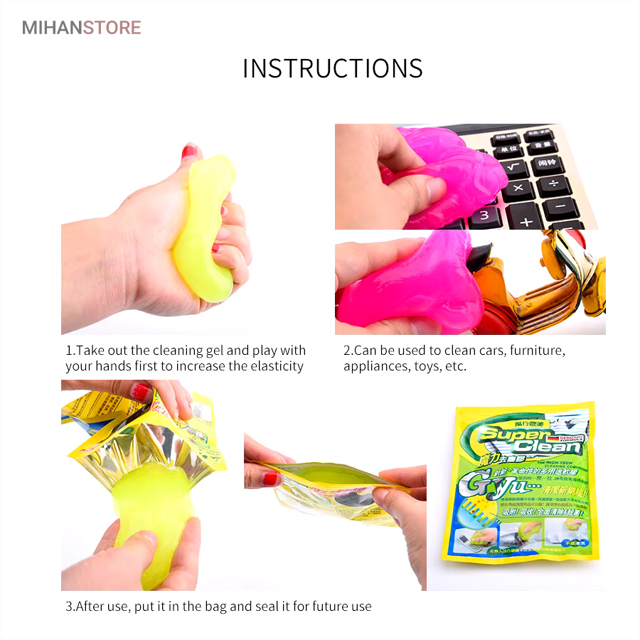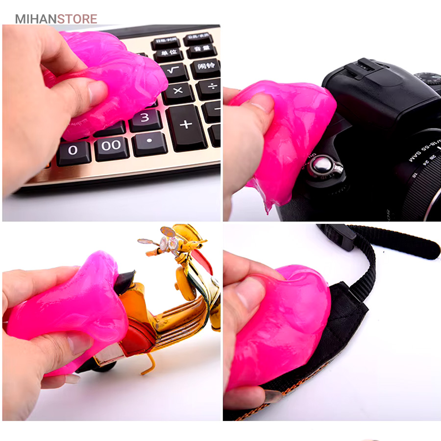 ژل جادویی تمیز کننده Super Clean می توانید گرد و غبار و کثیفی را که بین کلیدهای صفحه کلید قرار می گیرد و هر مکانی که با اسباب بازی های کلیدی کودکانتان نمی تواند به آن دسترسی پیدا کند را تمیز کنید.ژل جادویی تمیز کننده Super Clean با ساختار جنبشی خود که به راحتی شکل می گیرد، به هر منطقه ای می رسد و آن را تمیز می کند. می توانید بارها از آن استفاده کنید. تنها کاری که باید انجام دهید این است که یک بار روی ناحیه گرد و خاکی و کثیف فشار داده و بکشید. محل کثیف در عرض چند ثانیه تمیز می شود و هیچ باقی مانده یا چسبندگی خمیر ژل روی سطوح اعمال شده وجود ندارد.