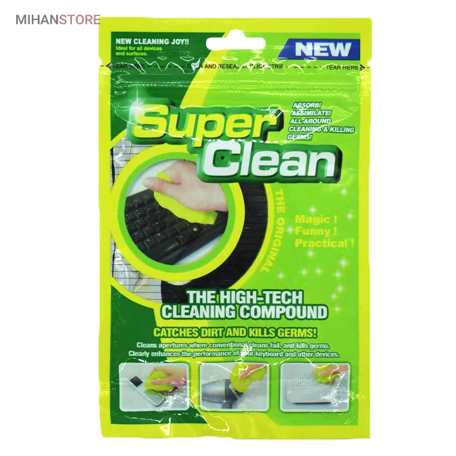 ژل تمیز کننده ، محصولی جدید با عملکردی فوق العاده است. این ژل به گونه ای است که محدودیت استفاده ندارد و می توانید به دفعات از آن استفاده نمایید . ژل جادویی تمیز کننده Super Clean، مناسب برای تمیز کردن سطوح مختلف نظیر کیبورد، کنترل تلویزیون، موبایل، خودرو و ... است. از ویژگی های بارز این ژل امکان استفاده برای قسمت هایی از سطوح است که دسترسی به آنها دشوار است، مانند فضای بین صفحه کلید رایانه و لپ تاپ است که به سادگی می تواند این قسمت ها را تمیز کند.