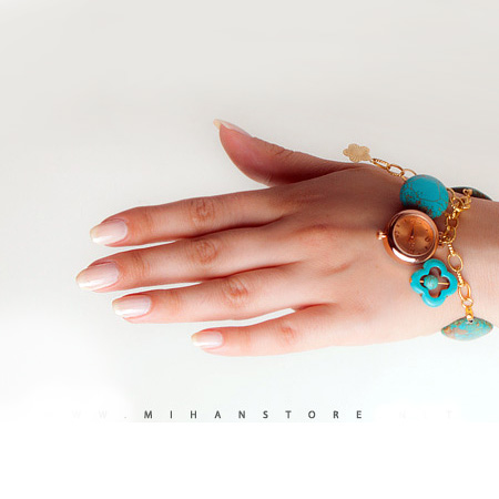 در طراحی این ساعت از سنگ های فیروزه تبتی