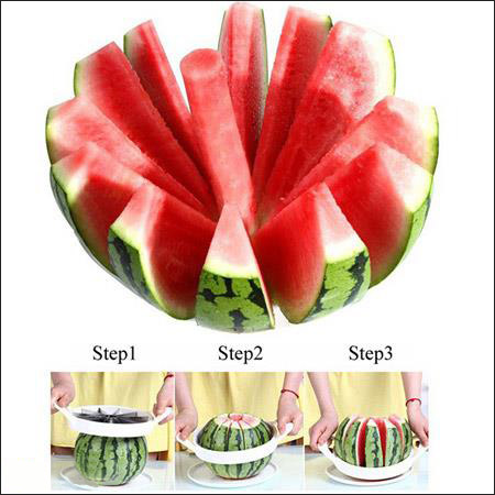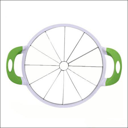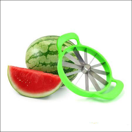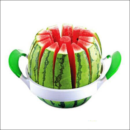 با استفاده از هندوانه قاچ کن دیگر مشکل تقسیم کردن و برش زدن هندوانه را نداریم. این محصول دارای تیغه هایی تیز و برنده می باشد که بدون نیاز به زور و فشار به راحتی می توانید هندوانه را به 12 برش مساوی تقسیم کنید و میل کنید. هندوانه قاچ کن را برای میوه های دیگر مانند طالبی، گرمک، خربزه و ... نیز می توان استفاده کرد. حتی به وسیله این محصول می توانید پیتزا و کیک های پخته شده را هم به قسمت های مساوی تقسیم کنید.