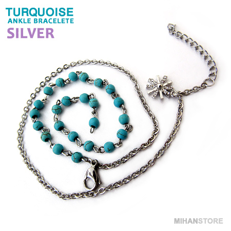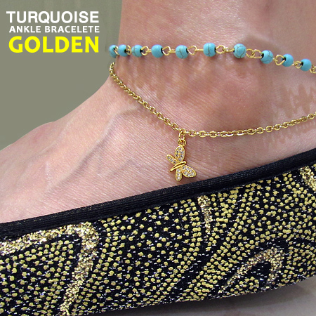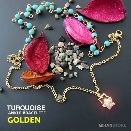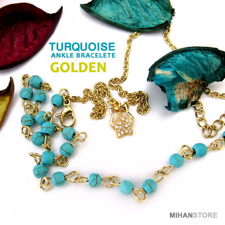 امروزه پوشیدن اکسسوری های کوچک و جذاب در کنار لباس ها استایل و تفاوت خاصی برای شما ایجاد می نماید. انواع مختلف لباس، طرح تکراری به خود گرفته و تنها با اضافه کردن زیورآلات است که می توان در جمع دوستان متفاوت جلوه کرد. پابند فیروزه در دو رنگ طلایی و نقره ای و سنگ های فیروزه ای همان چیزی است که شما برای درخشیدن در میان دوستان خود نیاز دارید. طراحی این پابند 2 لاین بوده (2 دور روی مچ پا می پیچد) و به این سبب جلوه ی بیشتری نسبت به بقیه پابند ها داشته و رنگ سبز فیروزه ای سنگ های آن با انواع لباس هماهنگی خاص دارد و همچنین آویز زیبا و درخشان این پابند زیبایی این محصول را دوچندان کرده است. شما می توانید بسته به طراحی رنگ لباس خود رنگ زنجیر نقره ای و یا طلایی این محصول را در سبد خرید انتخاب نمایید.