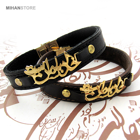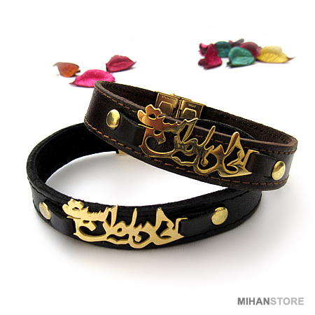 دستبند چرمی طرح خدا با من است با دو رنگ قهوهای و مشکی و پلاک نازک طلایی رنگ خدا با من است نمونهای از زیورهای ساده و در عین حال پرطرفدار از جانب آقایان و خانوم ها است که با اکثر رنگهای لباس همخوانی داشته و در عین حال متفاوت دیده میشود. این دستبندها مناسب ترین هدیه برای زوج های جوان است.