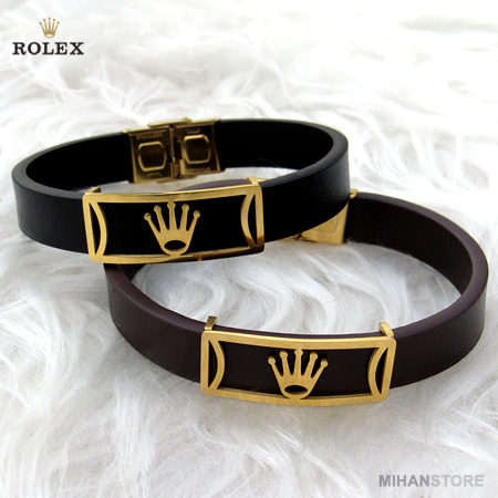این دستبند در دو رنگ قهوه ای تیره و مشکی و نماد رولکس عرضه شده است.