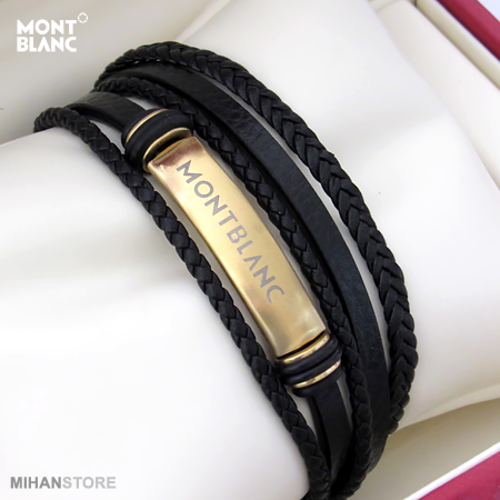دستبند چرم طرح Montblanc نمونهای از زیورهای ظریف و در عین حال پرطرفدار از جانب آقایان و خانم ها است که با اکثر رنگهای لباس همخوانی داشته و در عین حال متفاوت دیده میشود. این دستبند فوق العاده شیک از پنج لایه چرم به صورت ساده و بافته شده و نماد زیبای برند Montblanc با رنگ های لوگو مشکی و طلایی عرضه شده است.