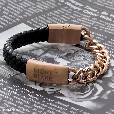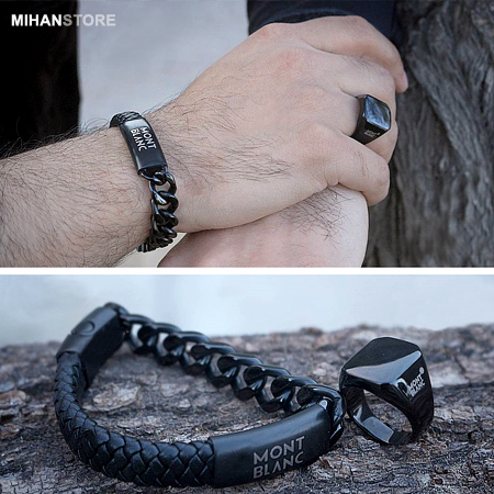 دستبند چرم و استیل طرح Mont Blanc نمونهای از زیورهای ظریف و در عین حال پرطرفدار از جانب همگان است که با اکثر رنگهای لباس همخوانی داشته و در عین حال متفاوت دیده میشود. این دستبند فوق العاده شیک از یک لایه چرم و یک لایه زنجیر استیل و نماد زیبای برند Mont Blanc با رنگ های لوگو مسی، طلایی و مشکی عرضه شده است.