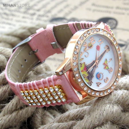 دارای نگین های درخشان بر روی صفحه و بند ساعت