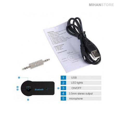 همواره به دنبال این هستید تا آهنگ های موجود در داخل موبایل و یا تبلت خود را با بلندگوی داخل اتومبیل پخش نموده و از جدید ترین آهنگ های خود در داخل اتومبیل لذت ببرید. دانگل بلوتوث AUX خودرو محصولی است که این رویا را بدون نیاز به هیچ سیمی و از طریق Bluetooth بر آورده می کند و تنها با اتصال آن به پورت AUX پخش اتومبیل به راحتی قادر خواهید بود که آهنگ های خود را داخل اتومبیل پخش نمایید. صبر کنید این تنها کارایی این وسیله کوچک و کاربردی نیست! شما می توانید از این وسیله به عنوان هندزفری استفاده نموده و تماس های خود را داخل اتومبیل بدون نیاز به گوشی خود به آسانی پاسخ دهید. این وسیله حتی به تمامی پخش کننده های دیگر نیز که پورت AUX دارند وصل شده و گوشی موبایل و یا تبلت شما را به آن اتصال می دهد.